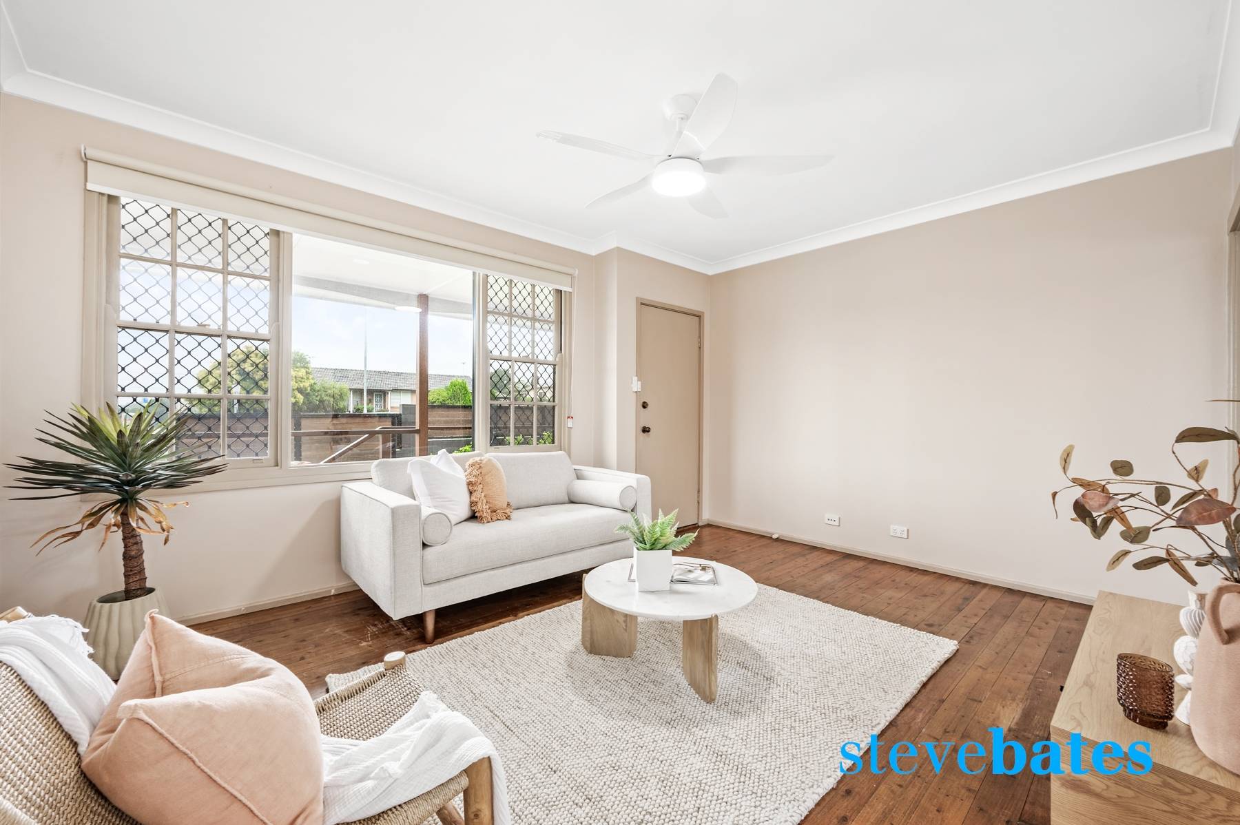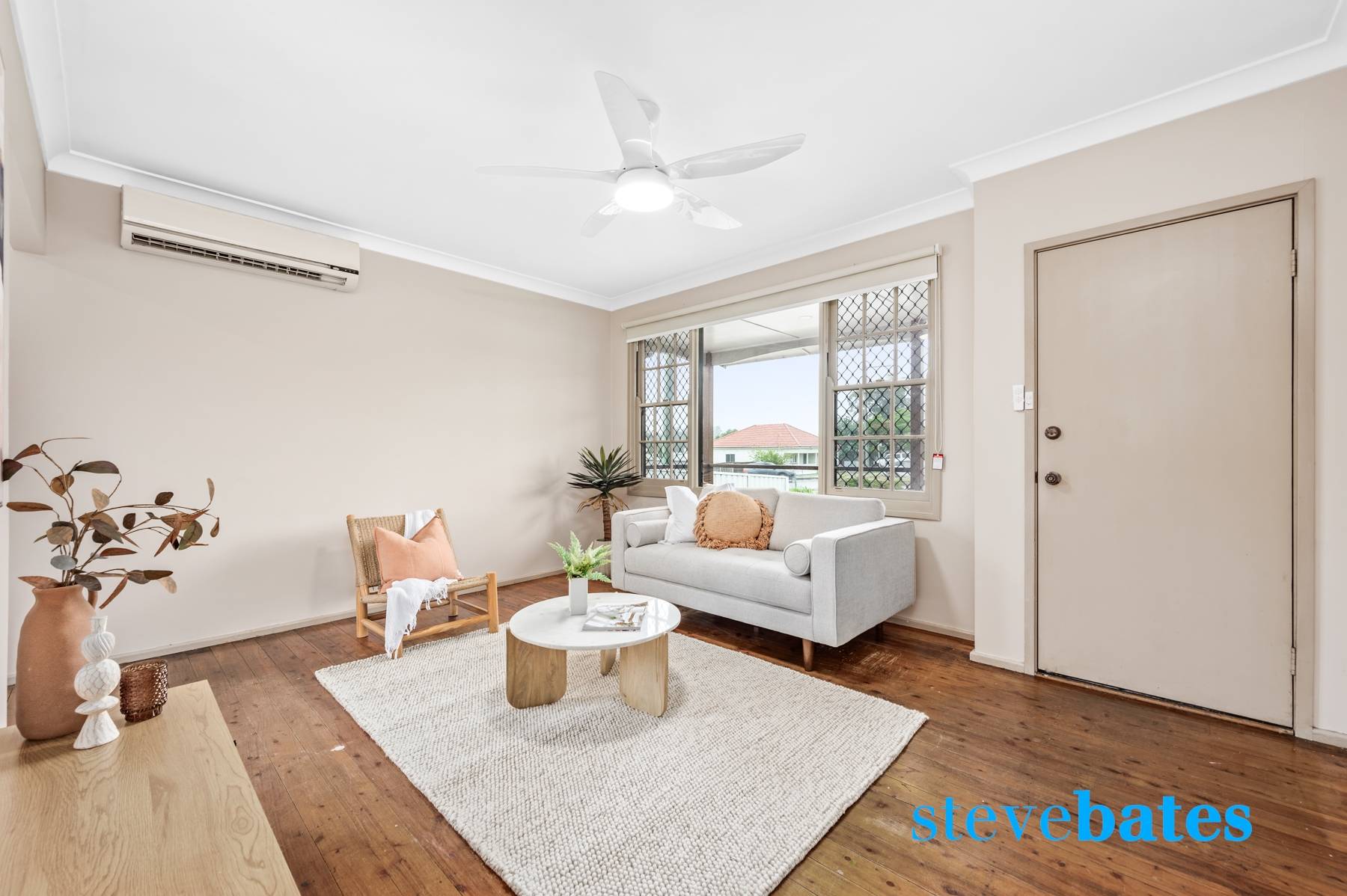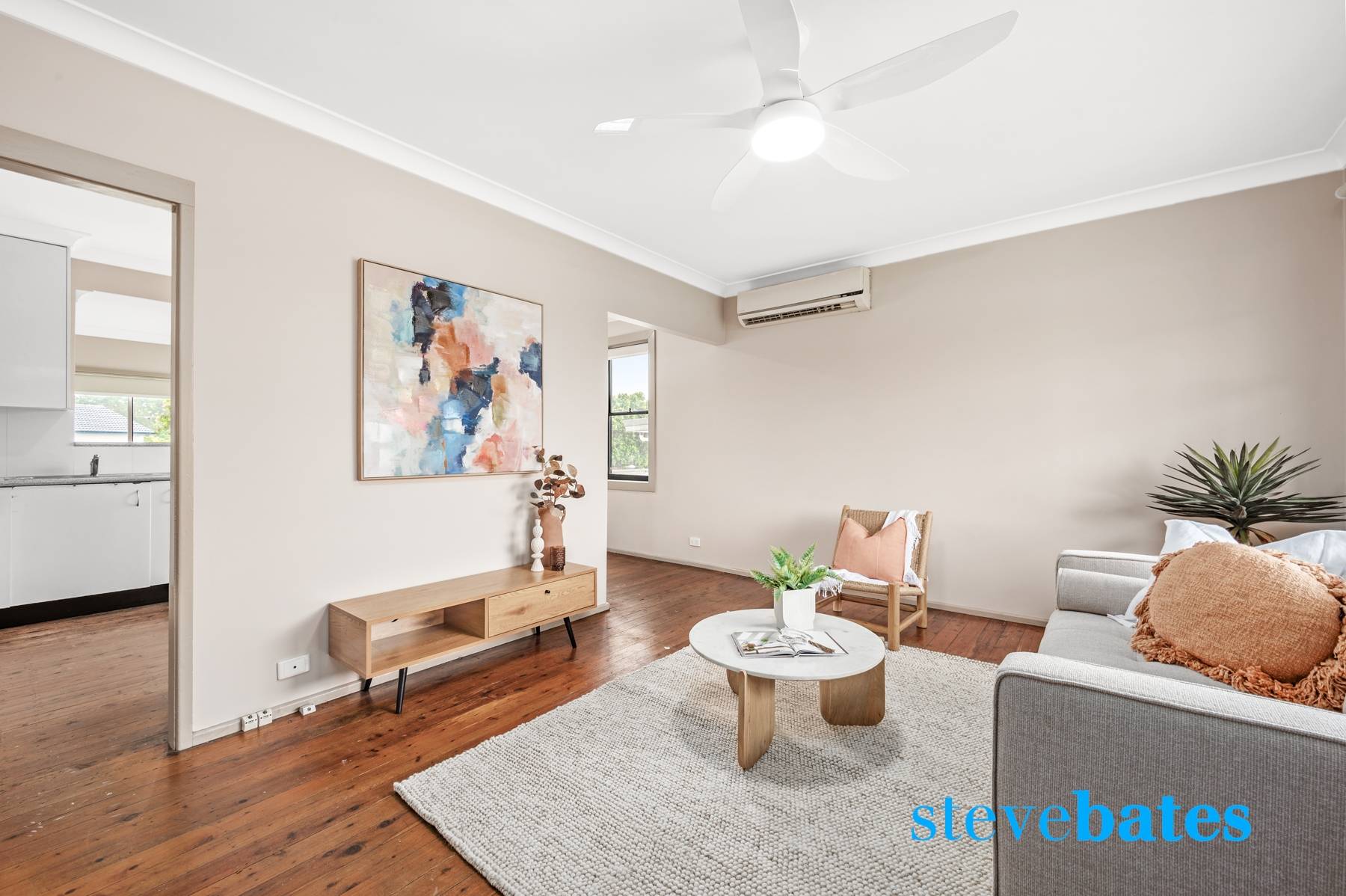 - Cosy living area featuring ceiling fan and reverse cycle air conditioning