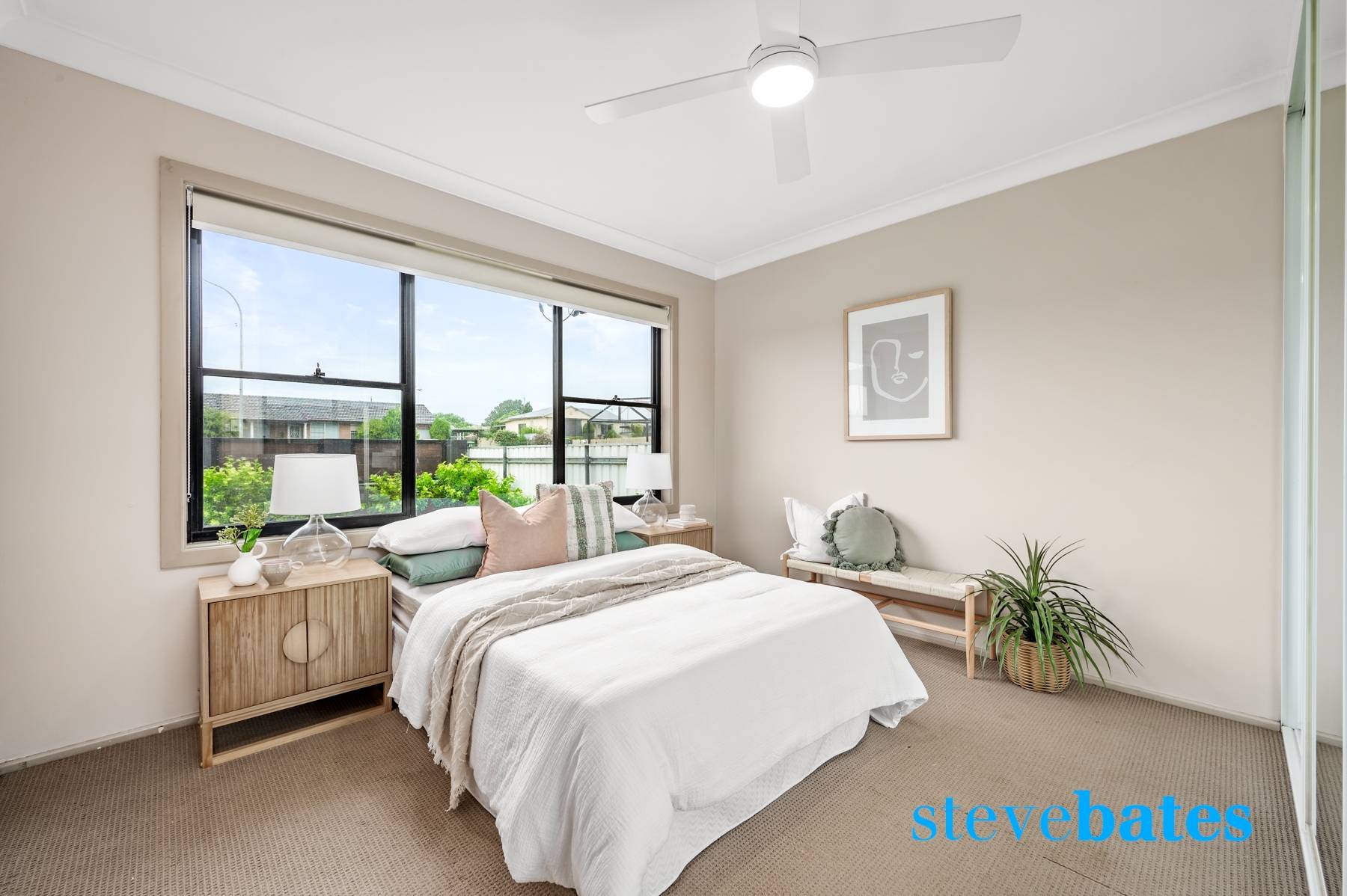 - Spacious master bedroom offering ceiling fan and large built in robe