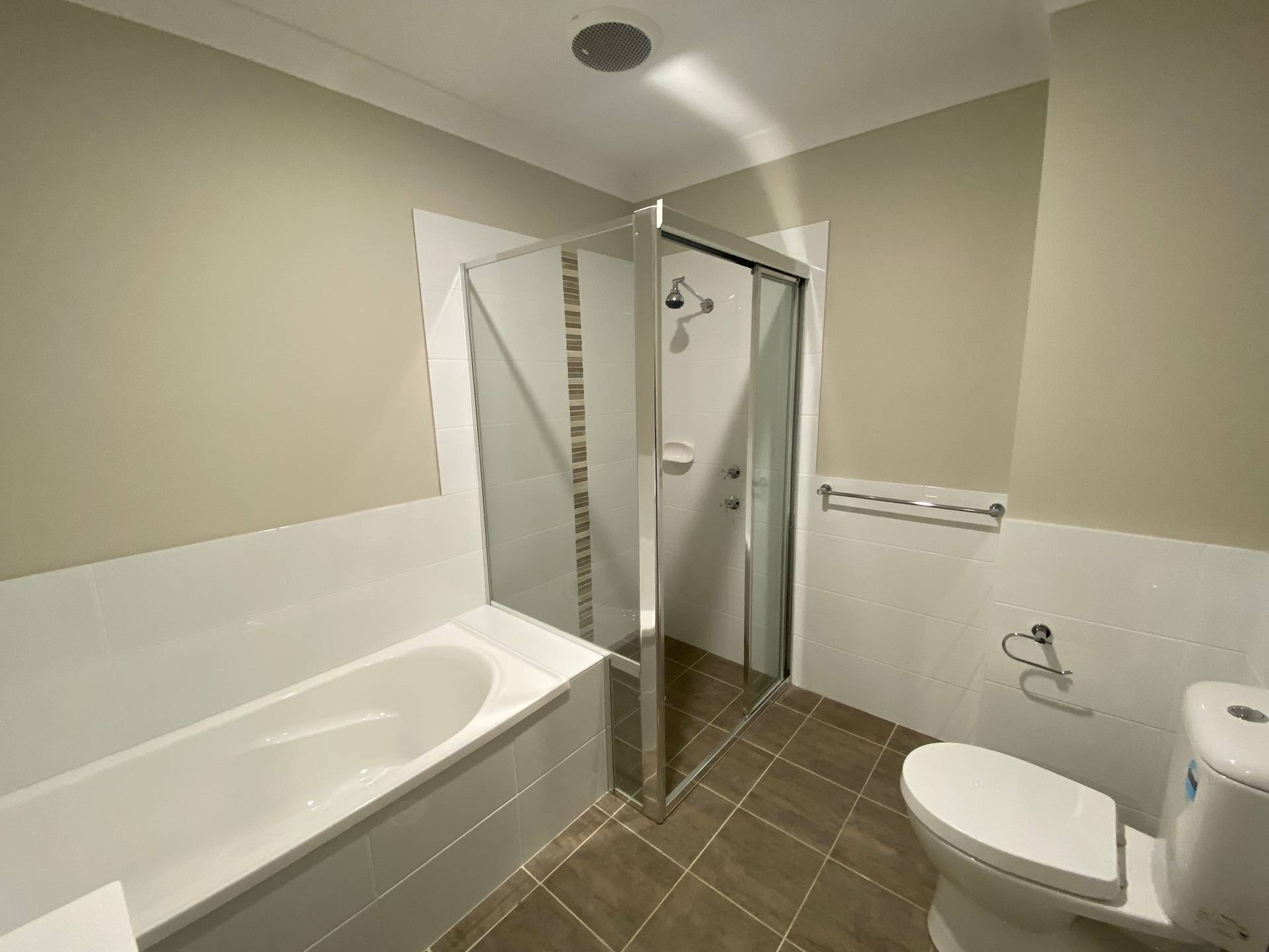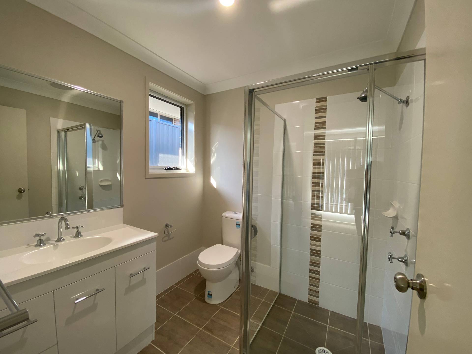 The master bedroom features its own private ensuite and generous wardrobe space, while the two additional bedrooms are well-sized and serviced by a central bathroom with a separate bath and shower — perfect for families, professionals, or sharers.