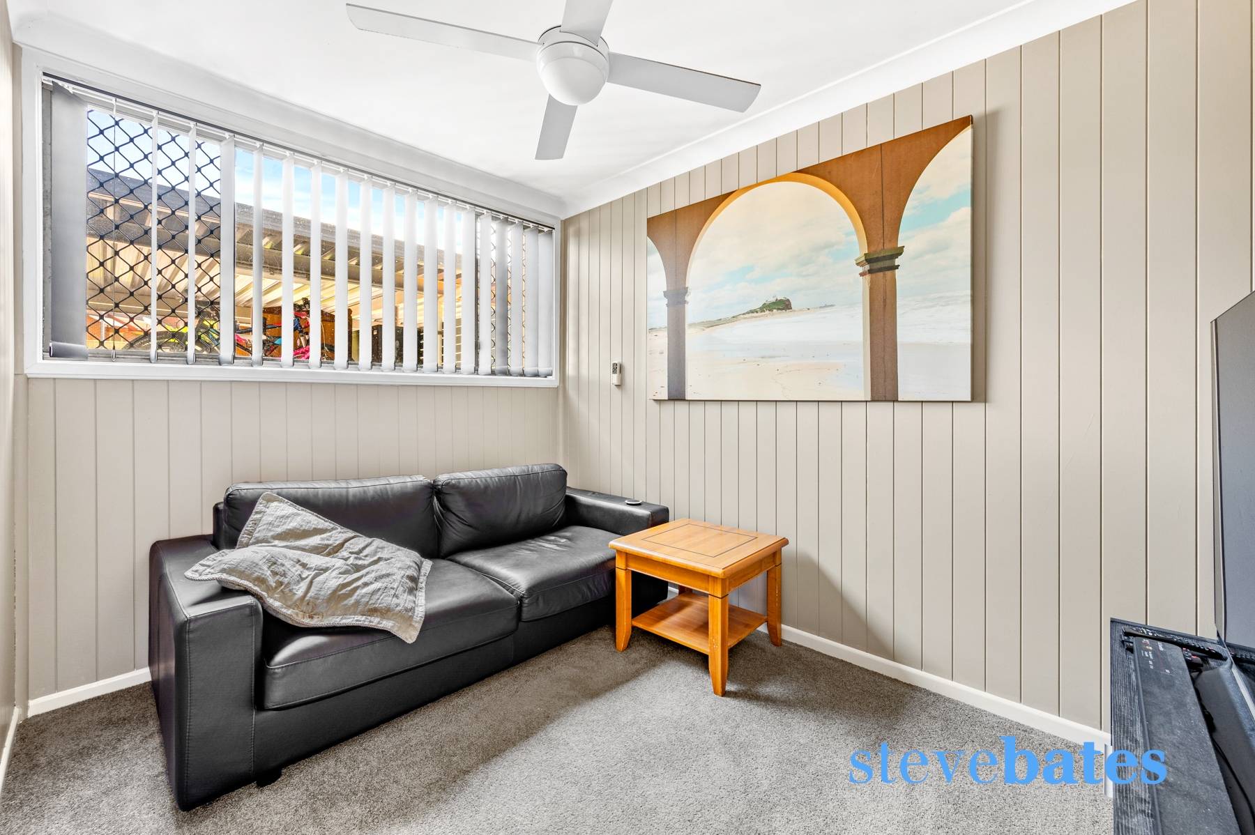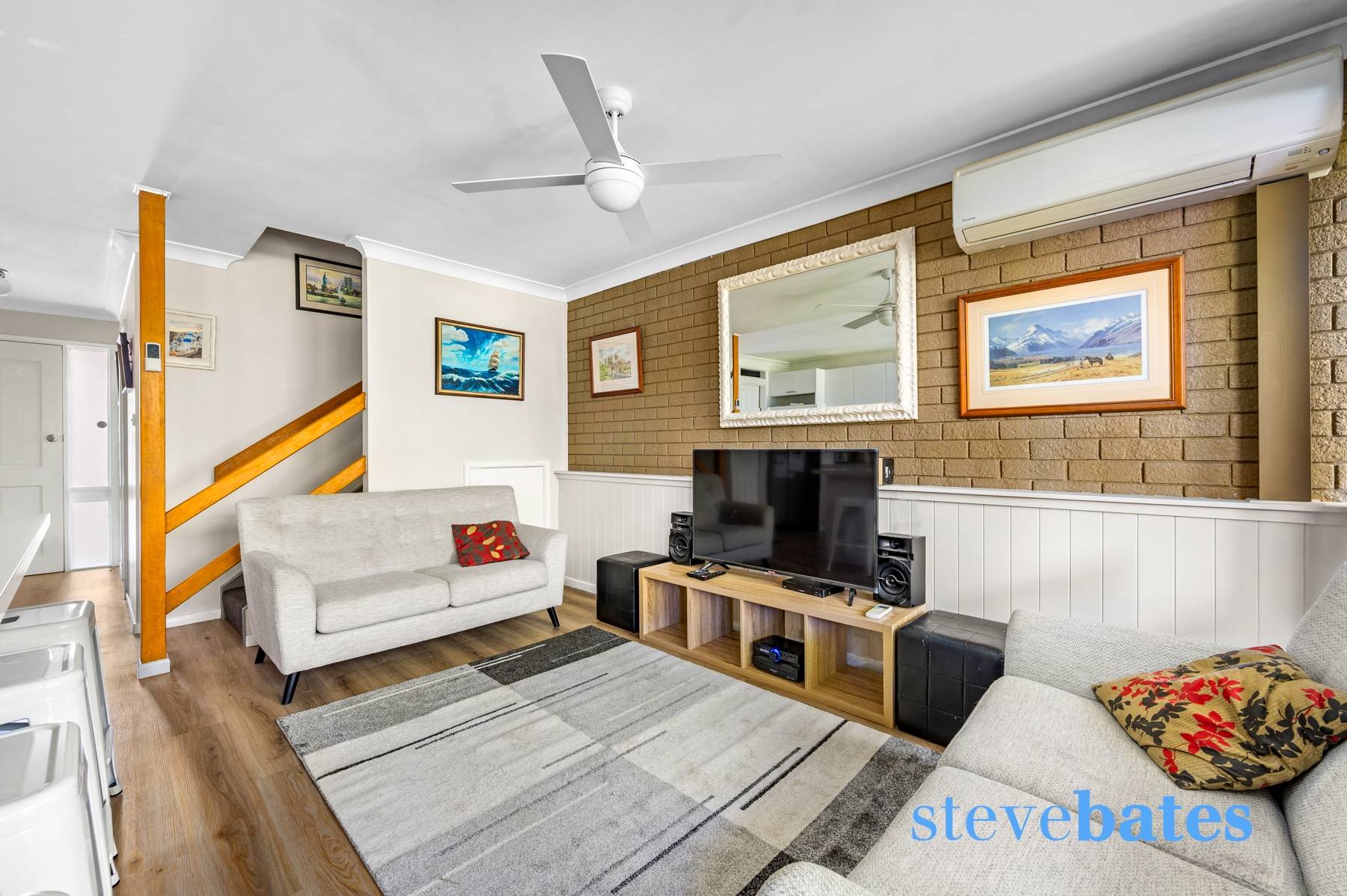 - Spacious living area off the kitchen with a reverse cycle air con and ceiling fan
