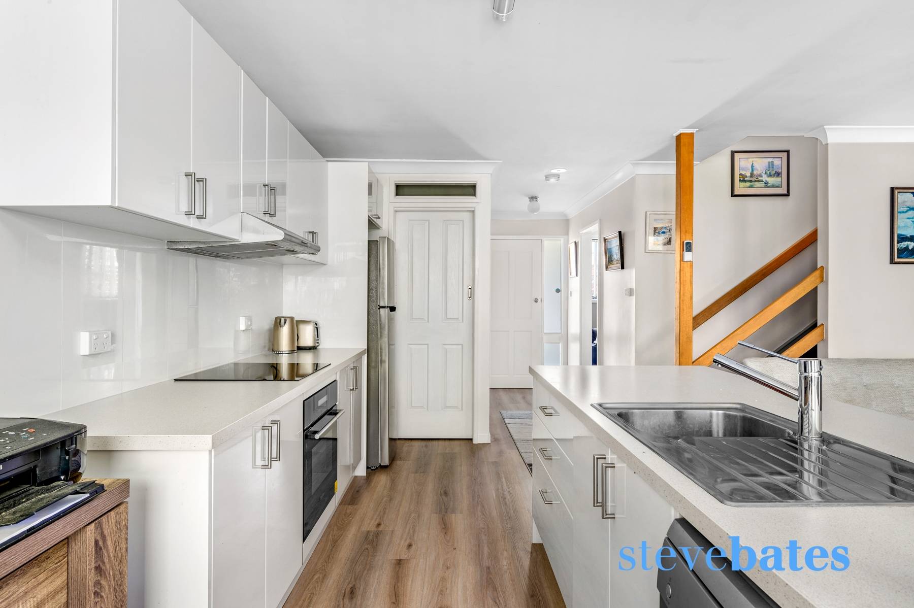 - A sleek modern kitchen boasts an island bench, dishwasher and walk in pantry