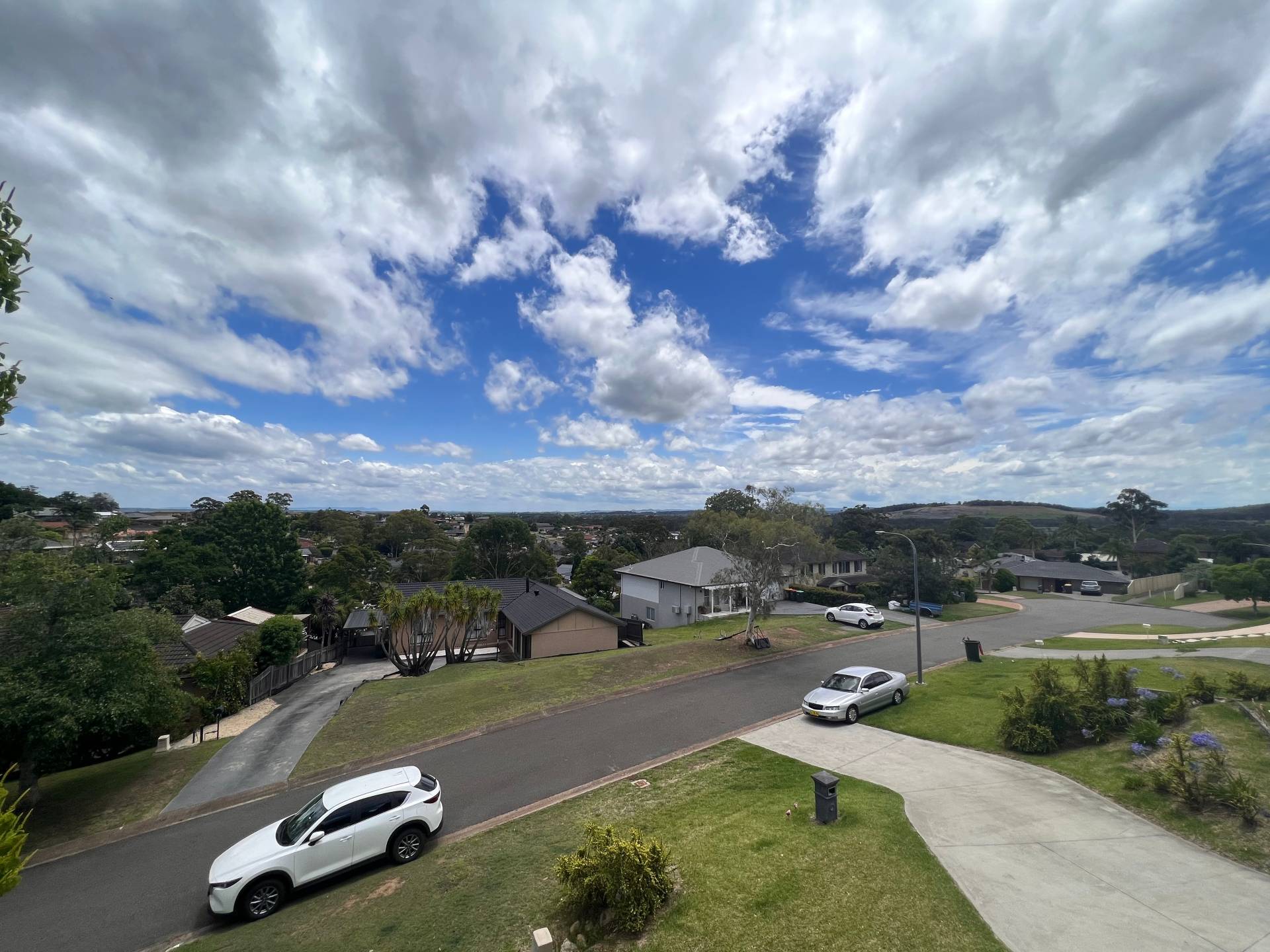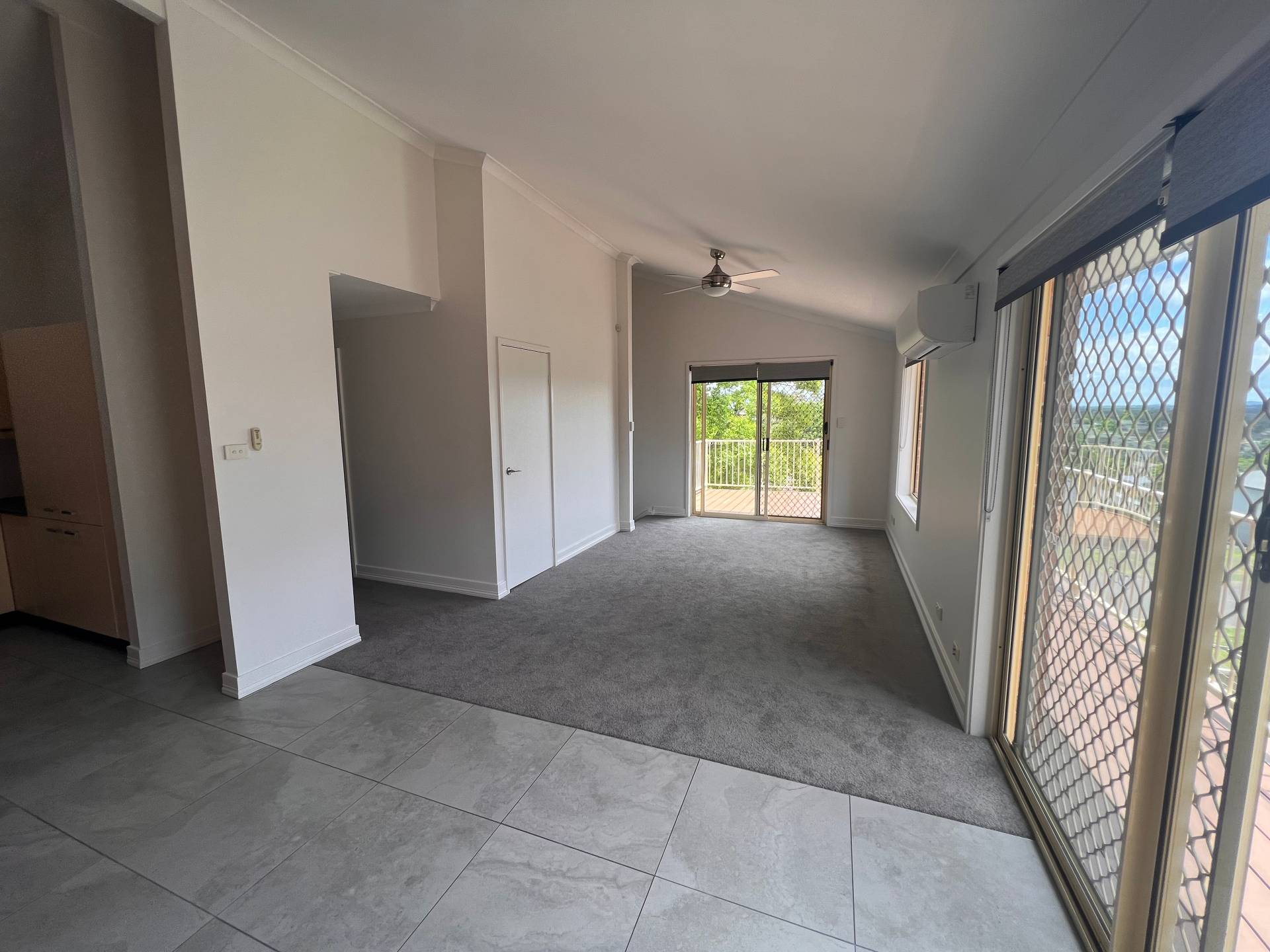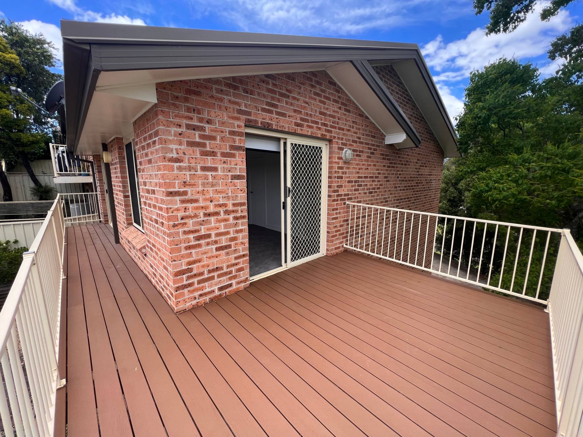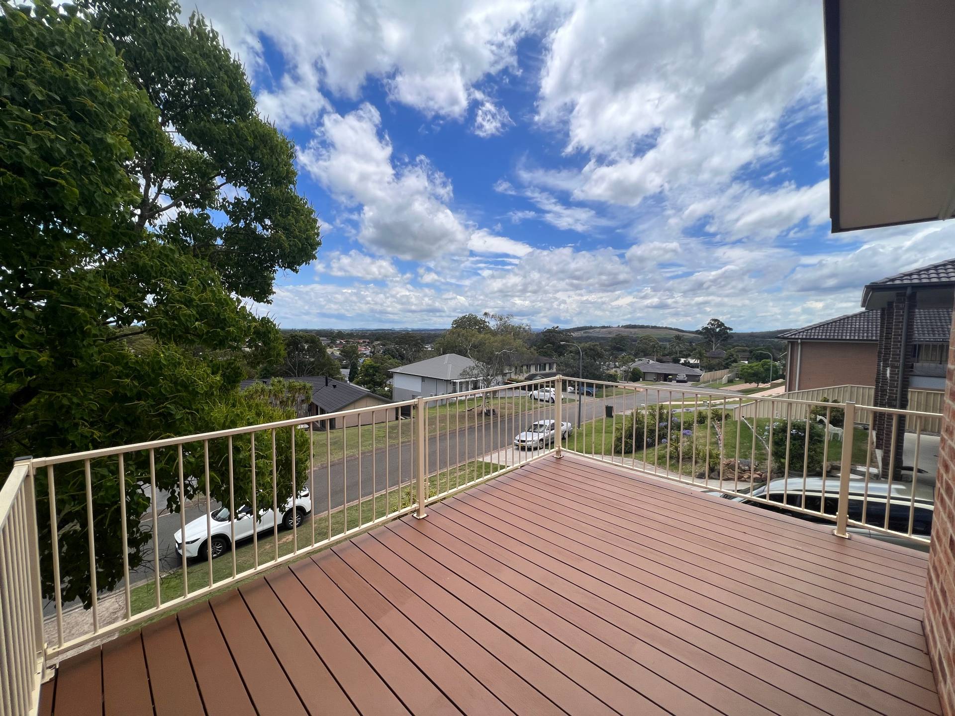 Air-conditioned living areas lead out to an open deck, offering panoramic views of Raymond Terrace.